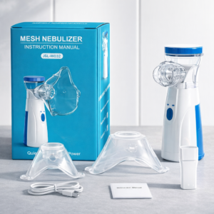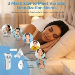 Experience easy and effective breathing relief with this compact Mesh Nebulizer, designed for kids and adults. Ideal for managing cough, throat irritation, asthma, nasal congestion, fever-related breathing difficulty, rhinitis, and other respiratory conditions. Its advanced mesh technology delivers fine mist particles that reach deep into the lungs for quick relief.